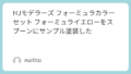 またクリアカラーや蛍光カラーの場合は透明スプーンの左半分を黒のサーフェーサー、右半分を白のサーフェーサーで下地を作っています。