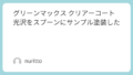 またクリアカラーや蛍光カラーの場合は透明スプーンの左半分を黒のサーフェーサー、右半分を白のサーフェーサーで下地を作っています。