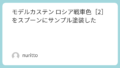 またクリアカラーや蛍光カラーの場合は透明スプーンの左半分を黒のサーフェーサー、右半分を白のサーフェーサーで下地を作っています。