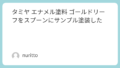 タミヤ エナメル塗料 クロムシルバーをスプーンにサンプル塗装した