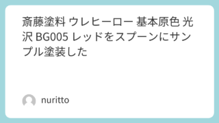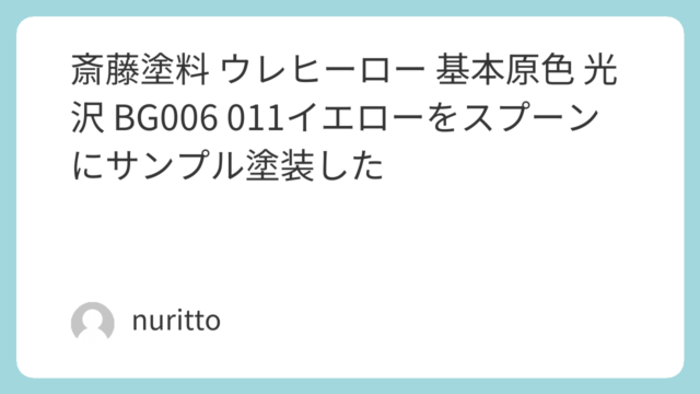 斎藤塗料 ウレヒーロー 基本原色 光沢 BG006 011イエローをスプーンにサンプル塗装した
